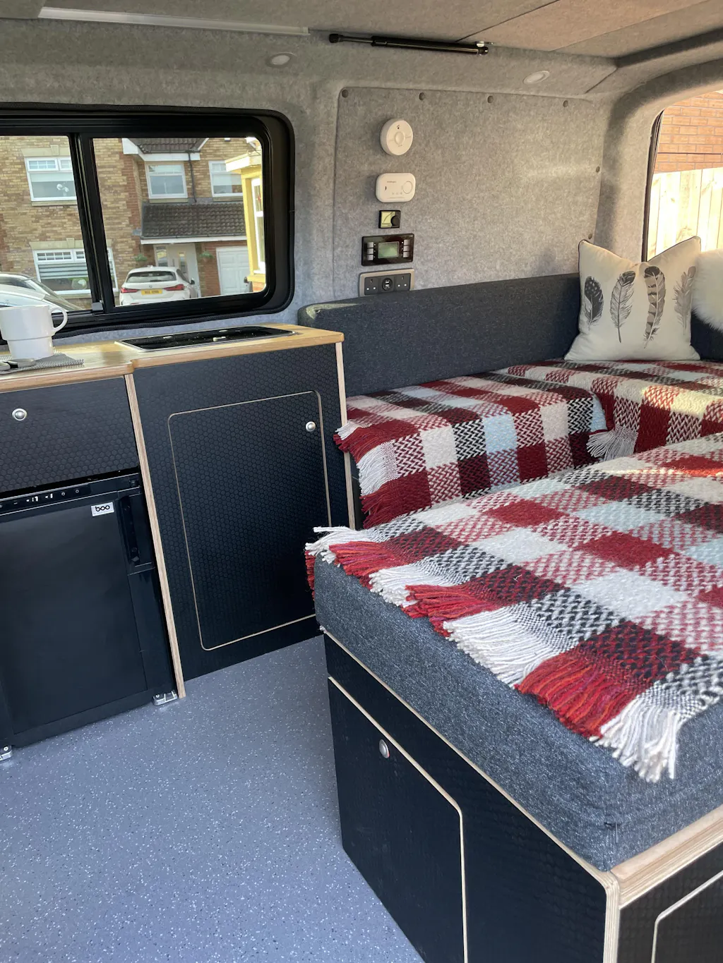 The U shape bed kits are shaped for the contours of the van, made from the highest quality 16mm laminated ply for unrivalled strength and a unique stunning end grain. This ply is incredibly strong and long lasting perfect for the toughest of camper van lifestyles!