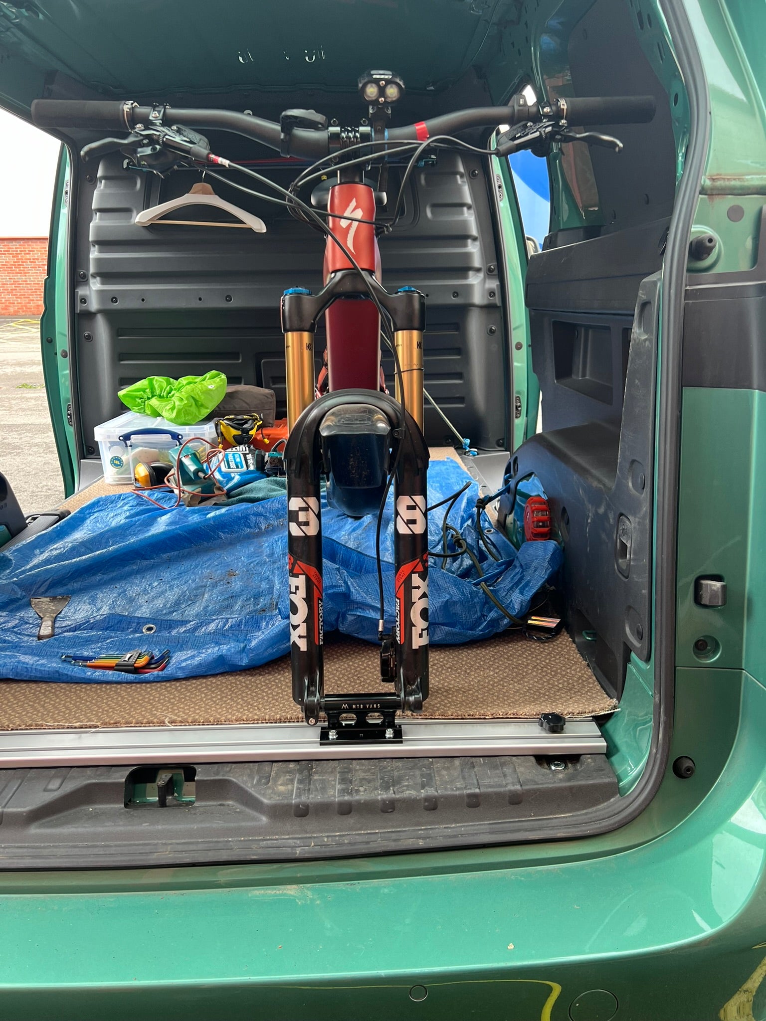 The rail gives you total flexibility, allowing you to mount fork holders at varying positions and angles to avoid handlebar interference and optimise space. Whether you're heading out for a weekend ride, road trip or competitive event, this setup gives your bikes maximum protection and keeps your van organised and clean.